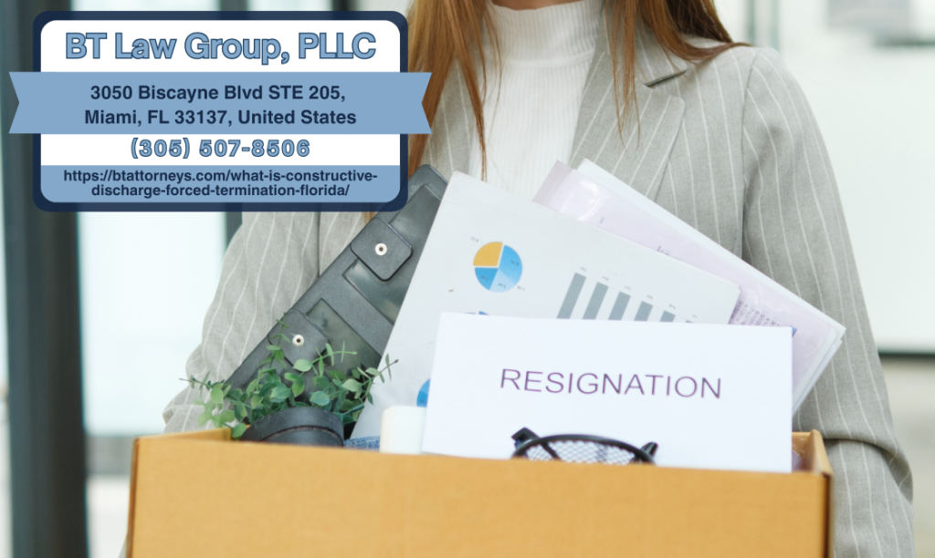 If your work environment has become unbearable due to discrimination, harassment, or retaliation, speaking with a Florida employment lawyer can help you understand whether you have a valid claim. Miami wrongful termination attorneys Jason D. Berkowitz and Anisley Tarragona of BT Law Group, PLLC represent employees in constructive discharge cases throughout South Florida. Call (305) 507-8506 to schedule a confidential consultation.